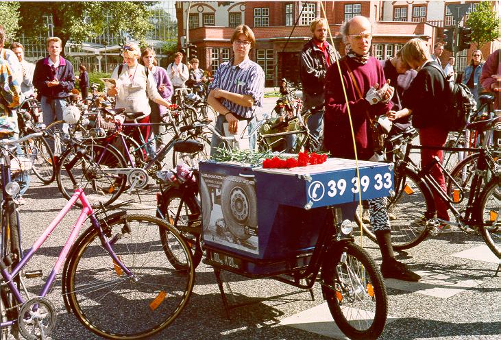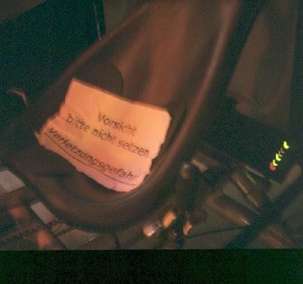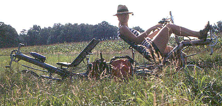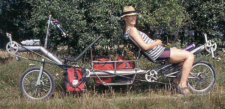 Stand 04.10.2k:,,...Wir sind jetzt bei Test-km 863, es kommen noch einige kleine Veränderungen. Vor einigen Tagen haben wir vorne das Schutzblech noch um einen großzügigen Schmutzfänger ergänzt, der dann gestern auch gut zum Einsatz kam: Du kennst den Naturbelag-Weg, der südlich von Airbus in Ost-West-Richtung durch die Wiesen läuft, gerade am Zaun entlang. Dieser Weg war einmal und ist nun umgepflügt - ist das die erste Baumaßnahme für die DASA-Erweiterung? Wir sind mit dem Tandem trotzdem durchgefahren, da wir nicht wussten, daß der Weg auf fast der gesamten Länge weg ist. Und für irgendetwas müssen ja die Dirty Harries gut sein :-(...''