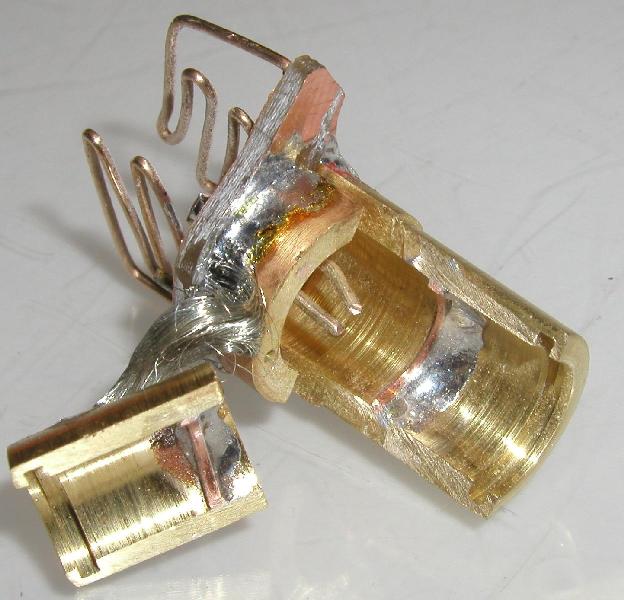 Die Verbindung zwischen beweglicher Außenbacke und Grundring erfolgt mit einem Büschel Litze aus hochflexibler verzinnter Laborlitze.