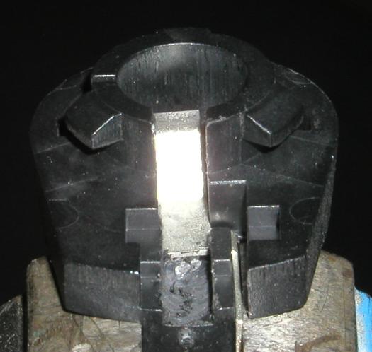 In älteren Sockeln war die Begrenzungsdiode nur geklemmt und der Kontakt war relativ unsicher. Zudem war die Position in dem zylindrischen Raum hinter dem Masseblech schlecht gekühlt (Keine Luftkühlung, ein Bein an der birnengewärmten Feder, nur das Massebeinchen über eine kleine Kontaktzone zur äußeren Umgebung). Hier kann man einfach die Kontaktfeder, leicht drehend, herausziehen, die Begrenzungsdiode mit einer Spitz-Zange fassen und herausziehen und dann bei Schritt drei weitermachen.